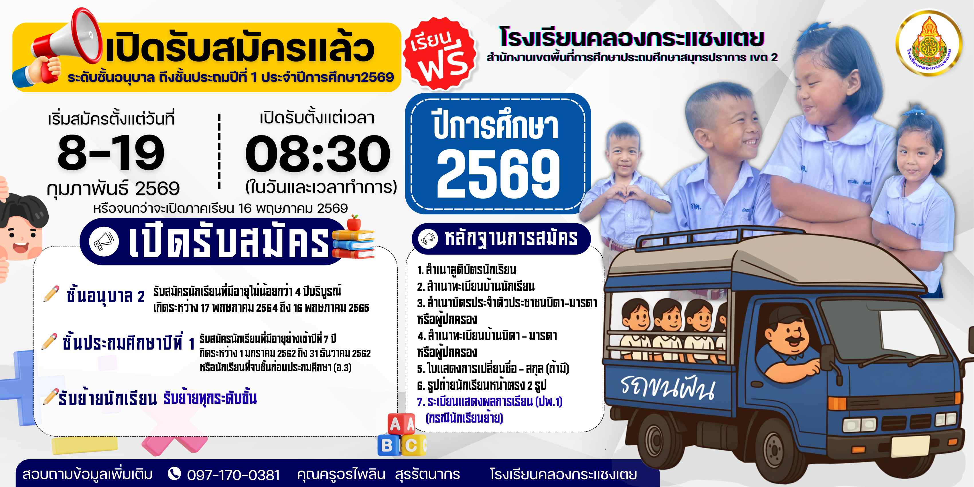 ประกาศโรงเรียนคลองกระแชงเตย ให้ใช้หลักสูตรโรงเรียนคลองกระแชงเตย พุทธศักราช ๒๕๖๘ ตามหลักสูตรแกนกลางการศึกษาขั้นพื้นฐาน พุทธศักราช ๒๕๕๑ (ฉบับปรับปรุง พุทธศักราช ๒๕๖๐) 19 พ.ค. 68